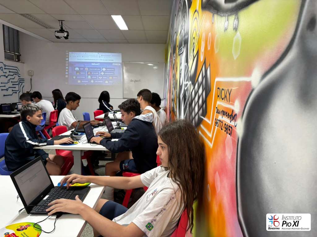 Os alunos utilizaram o Laboratório de Informática para, orientados pela professora Heloísa, trabalharem a fixação e revisão do conteúdo do 4º bimestre.
