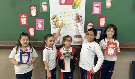Os alunos do Pré 1, orientados pela professora Gabriella, estão aprendendo a