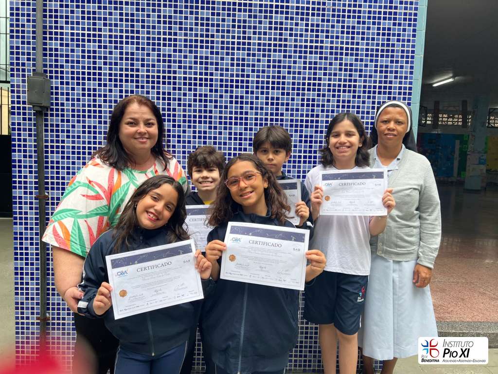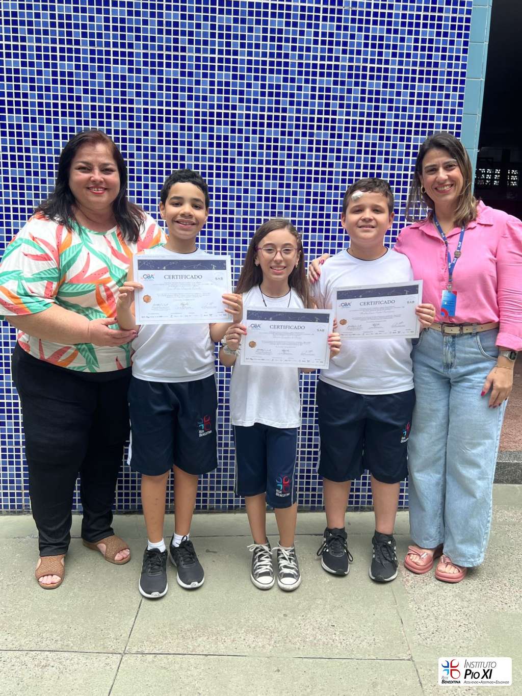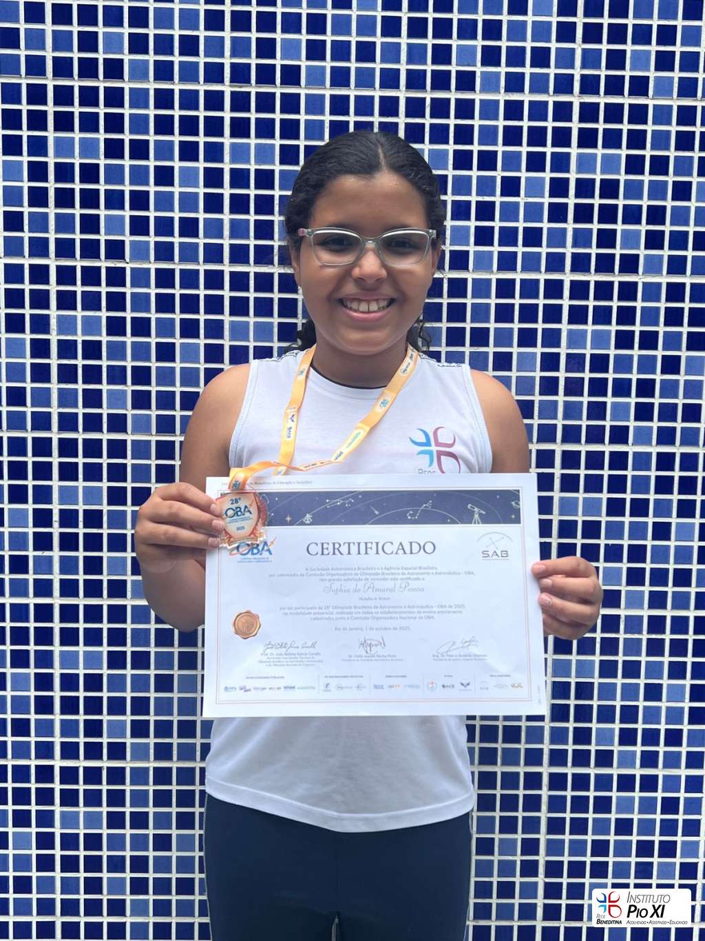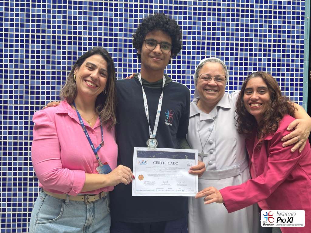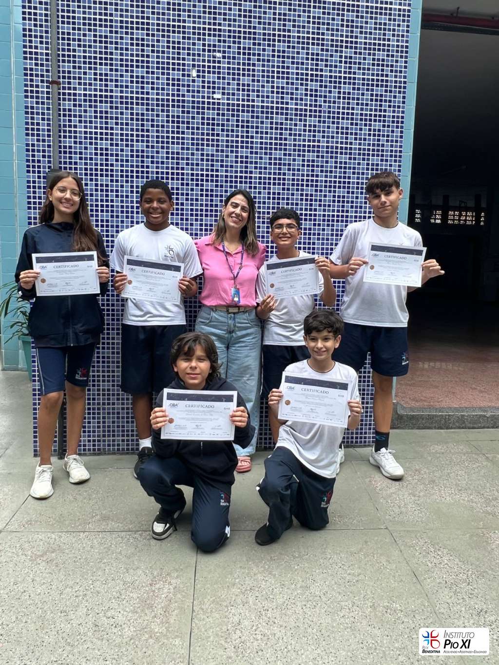 Destaque para o aluno Victor Hugo Ximenes, medalha de prata, e para a aluna Sophia do Amaral, medalha de bronze, verdadeiros exemplos de esforço compromisso com o conhecimento!