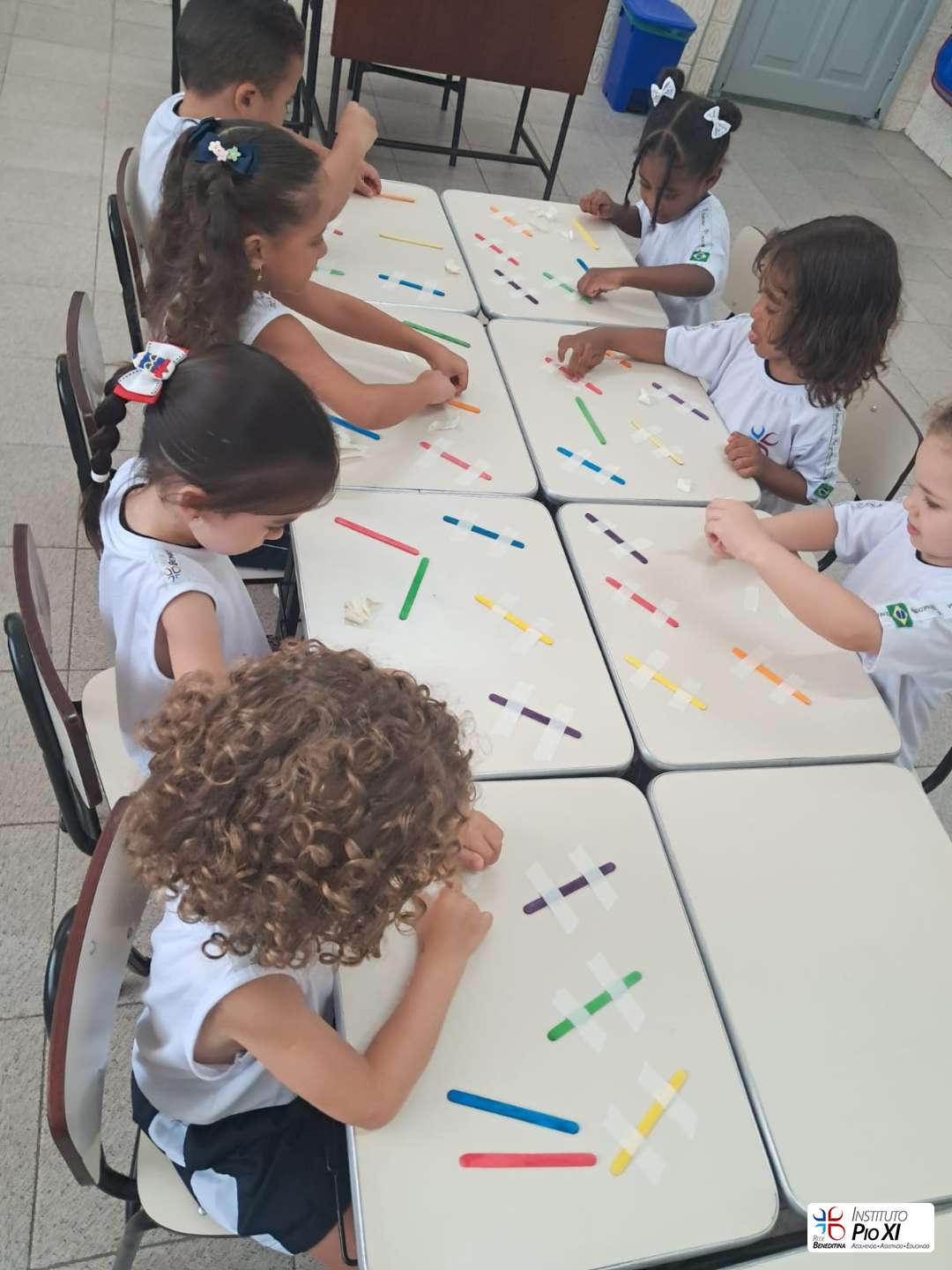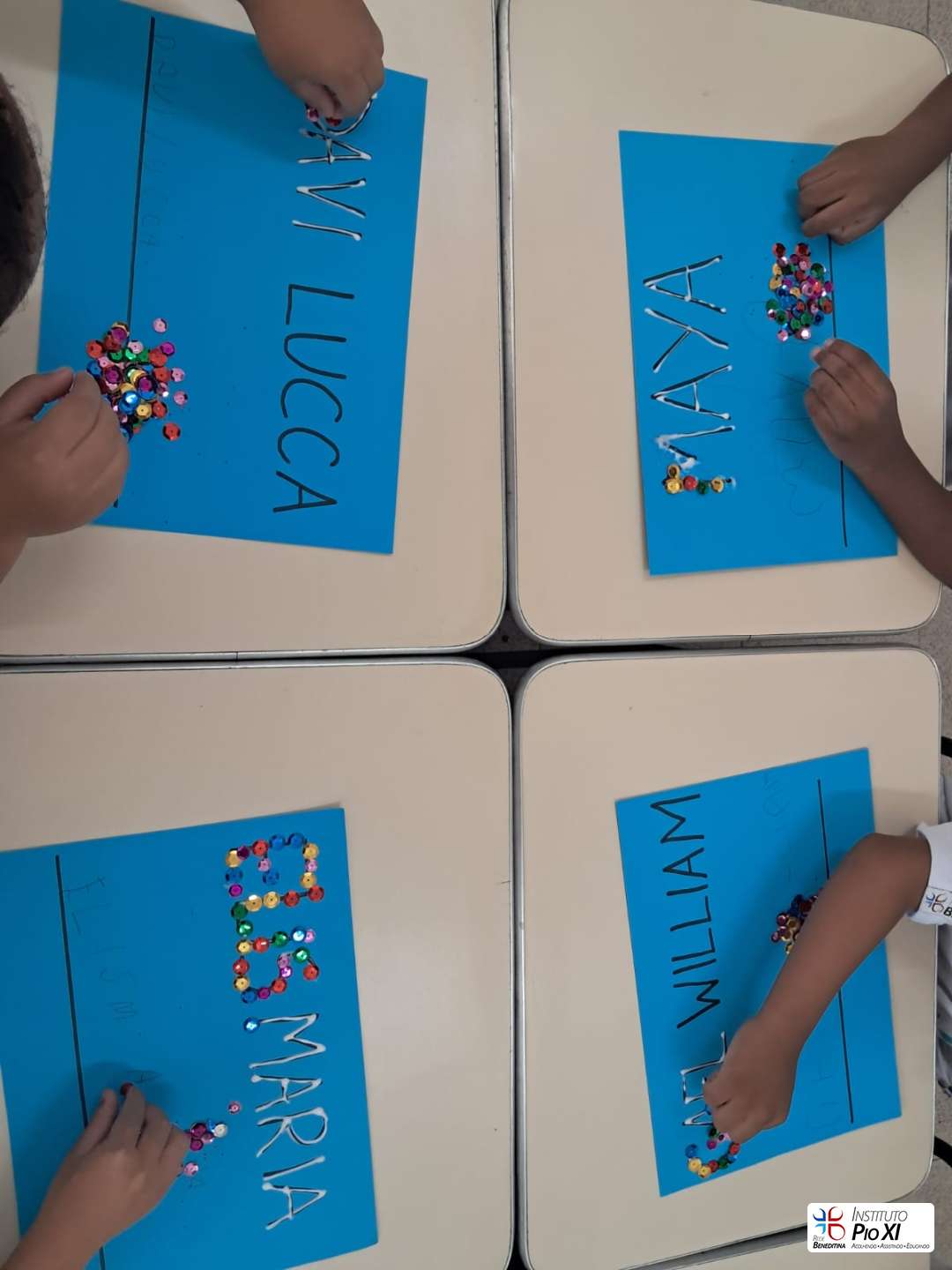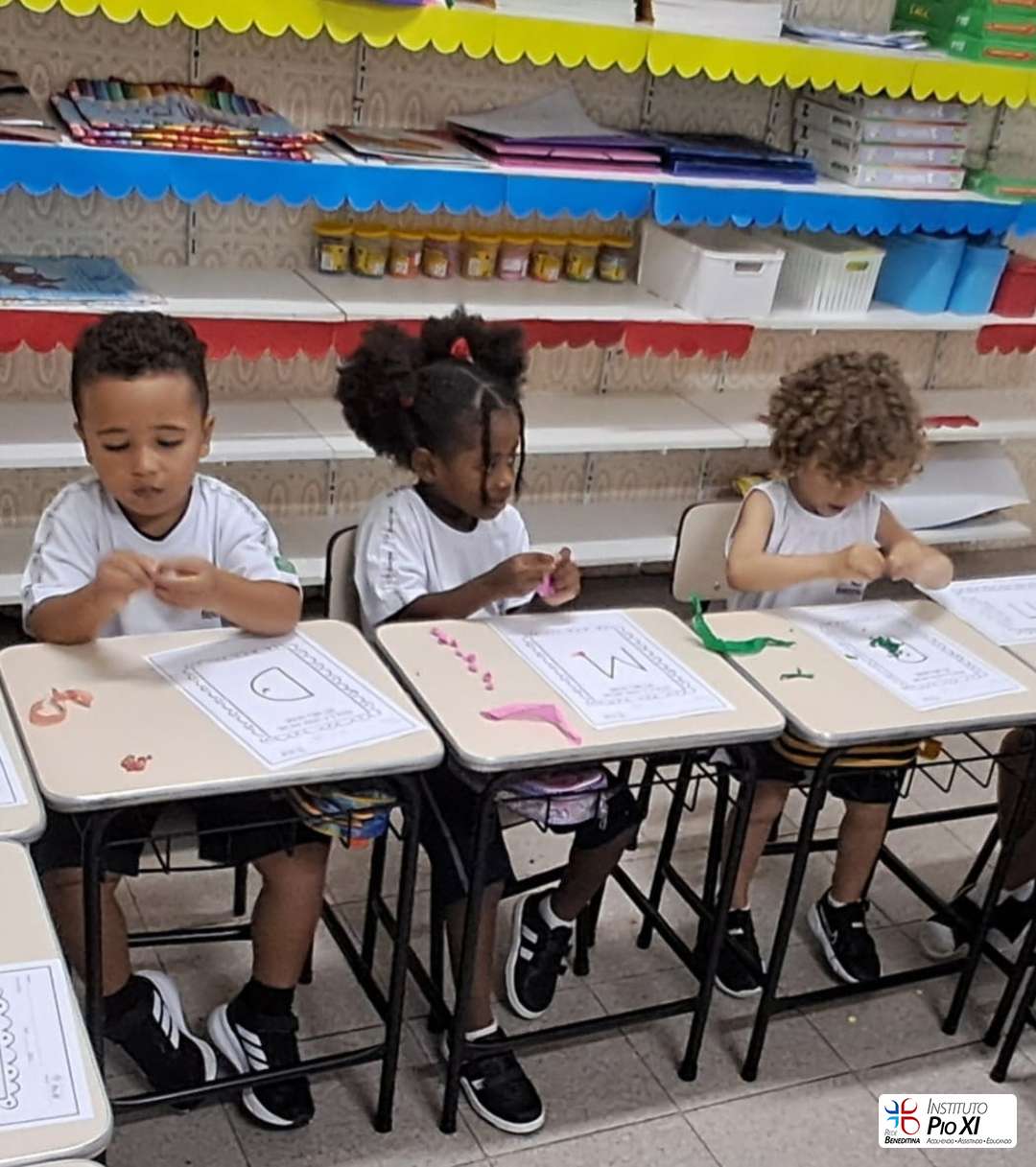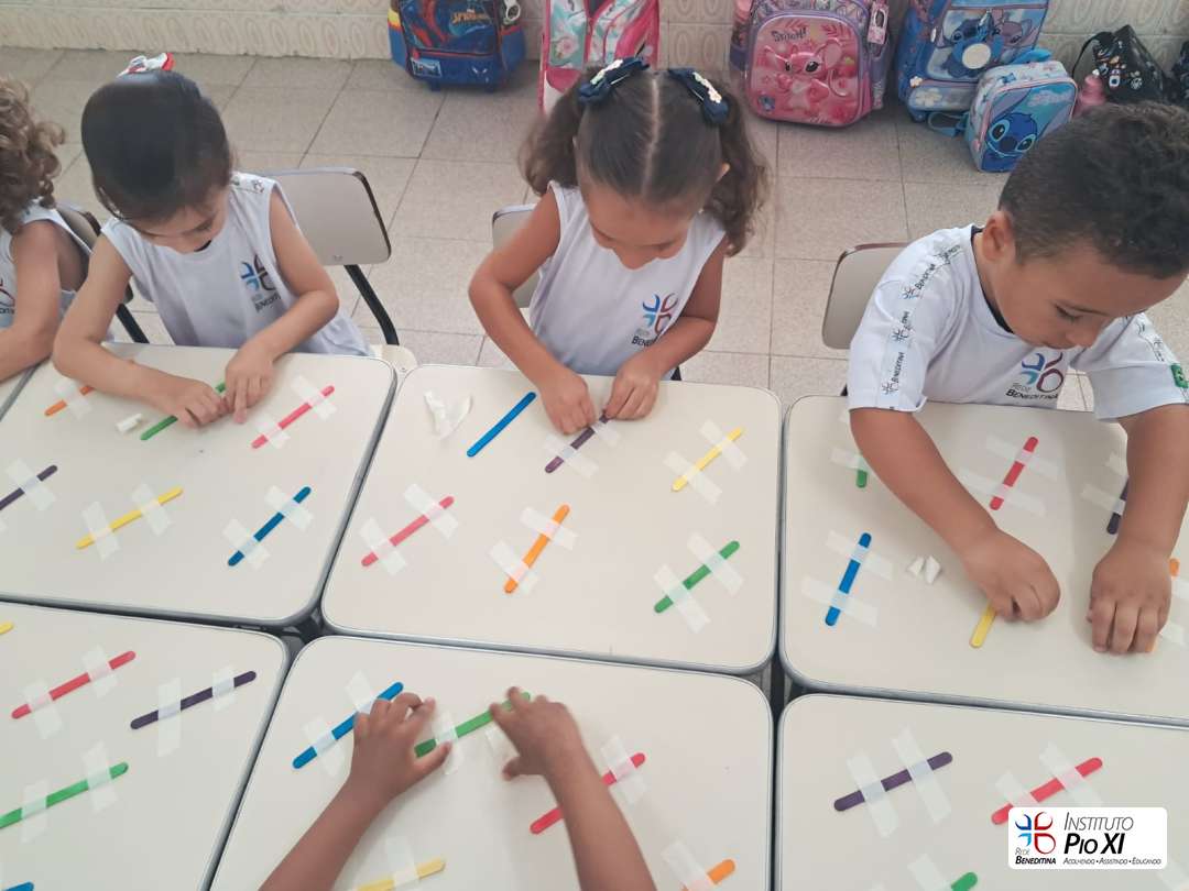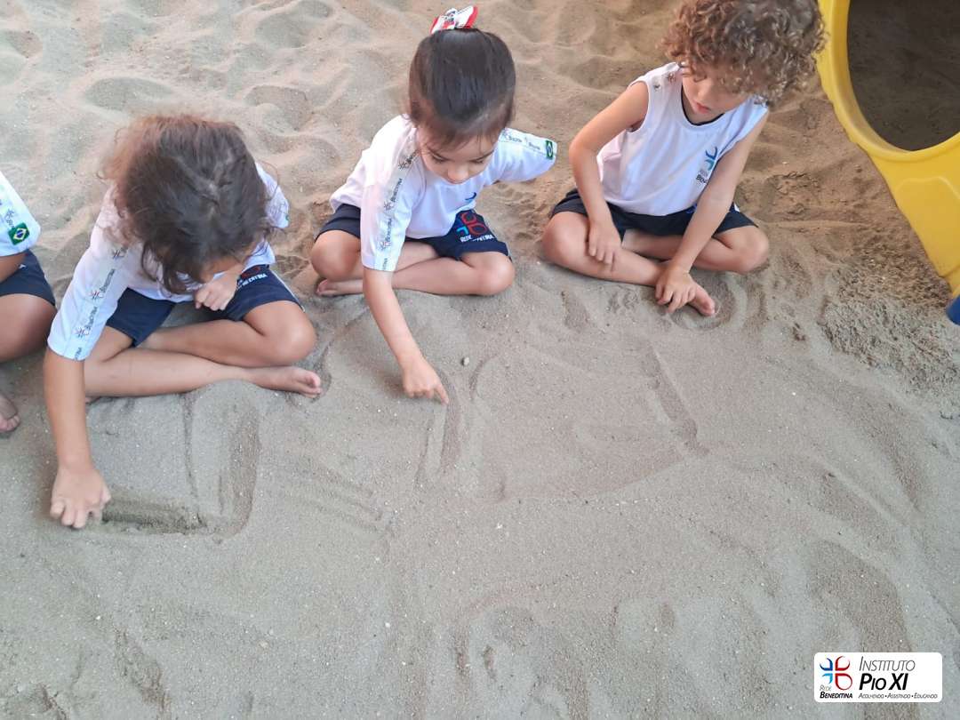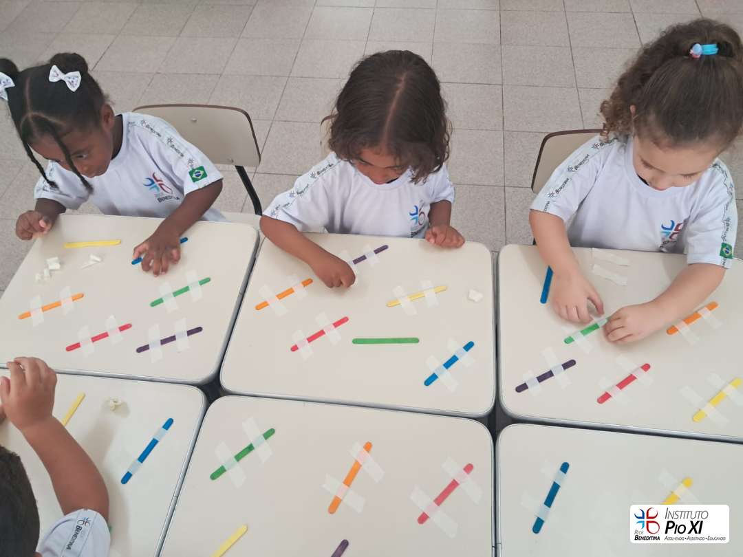 A turma do Pré 1, vem realizando atividades para desenvolver a coordenação motora fina, como colagem de bolinhas de papel crepom e lantejoulas, exploração das vogais na areia e retirada de fita do palito. De forma lúdica, as crianças fortalecem o movimento de pinça, a concentração e o controle dos pequenos movimentos, essenciais para o processo de escrita.