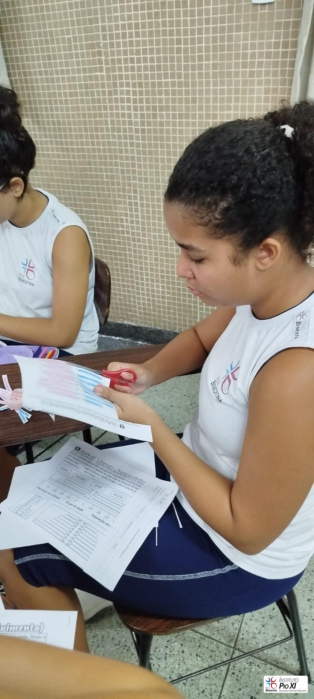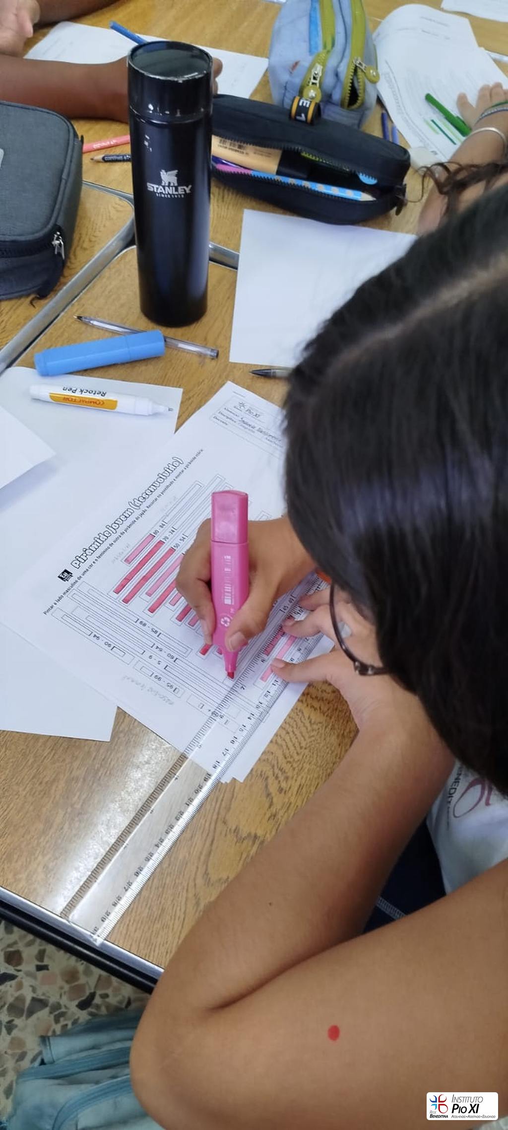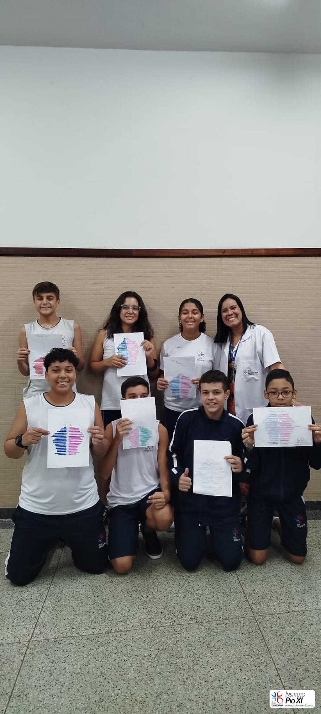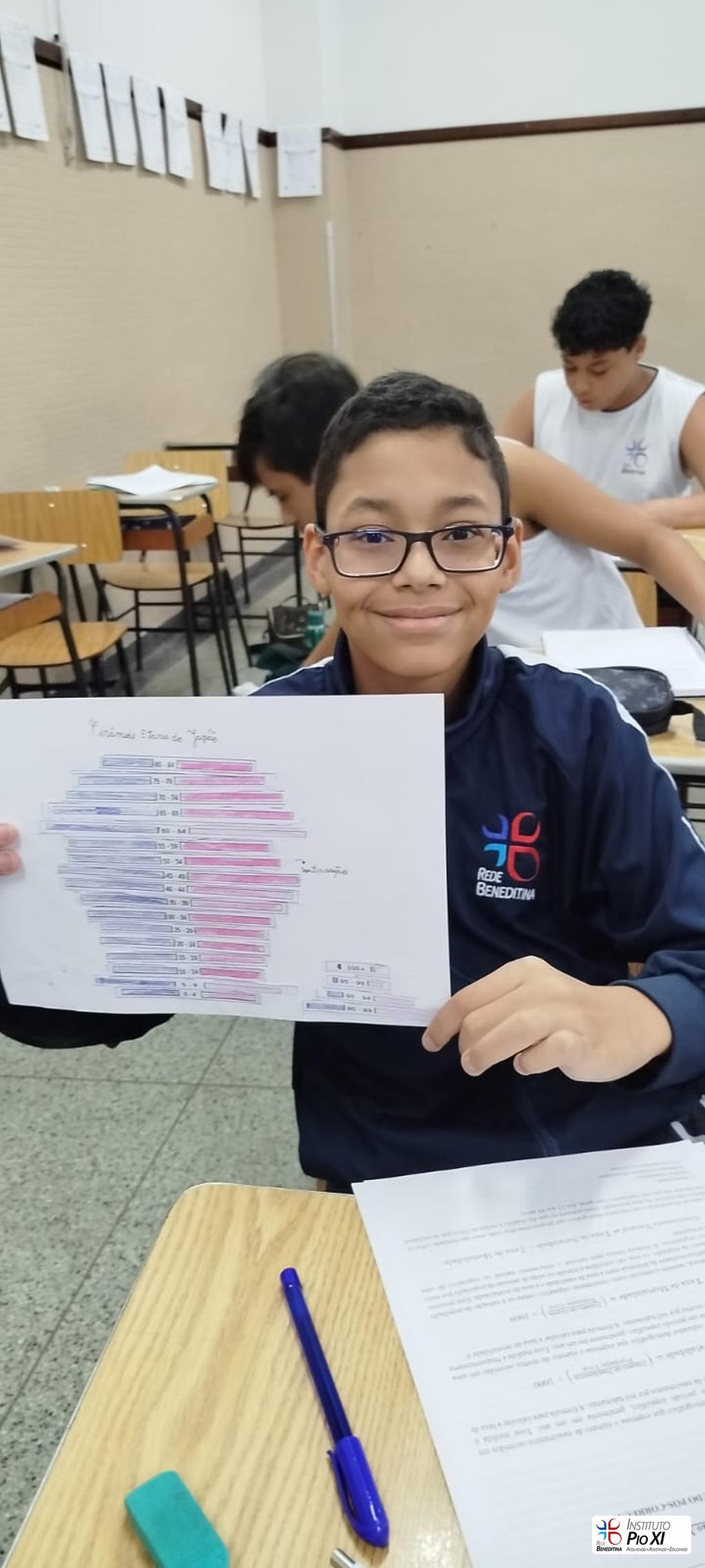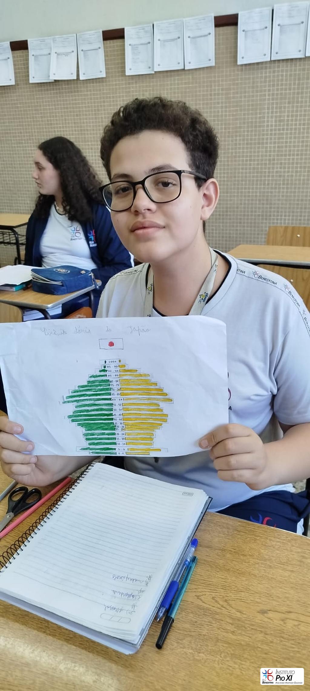 Durante a aula de geografia, os alunos do 8 ano, direcionados pela professora Taise, receberam como desafio confeccionar uma pirâmide etária do zero.