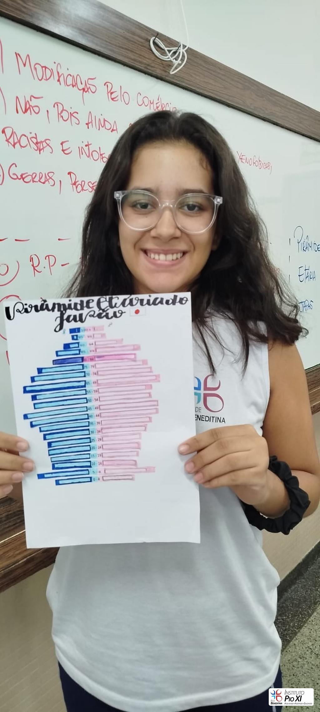 Através do conteúdo abordado em sala de aula, em grupos , os alunos montaram e decoraram suas pirâmides etárias com muita personalidade e empenho!