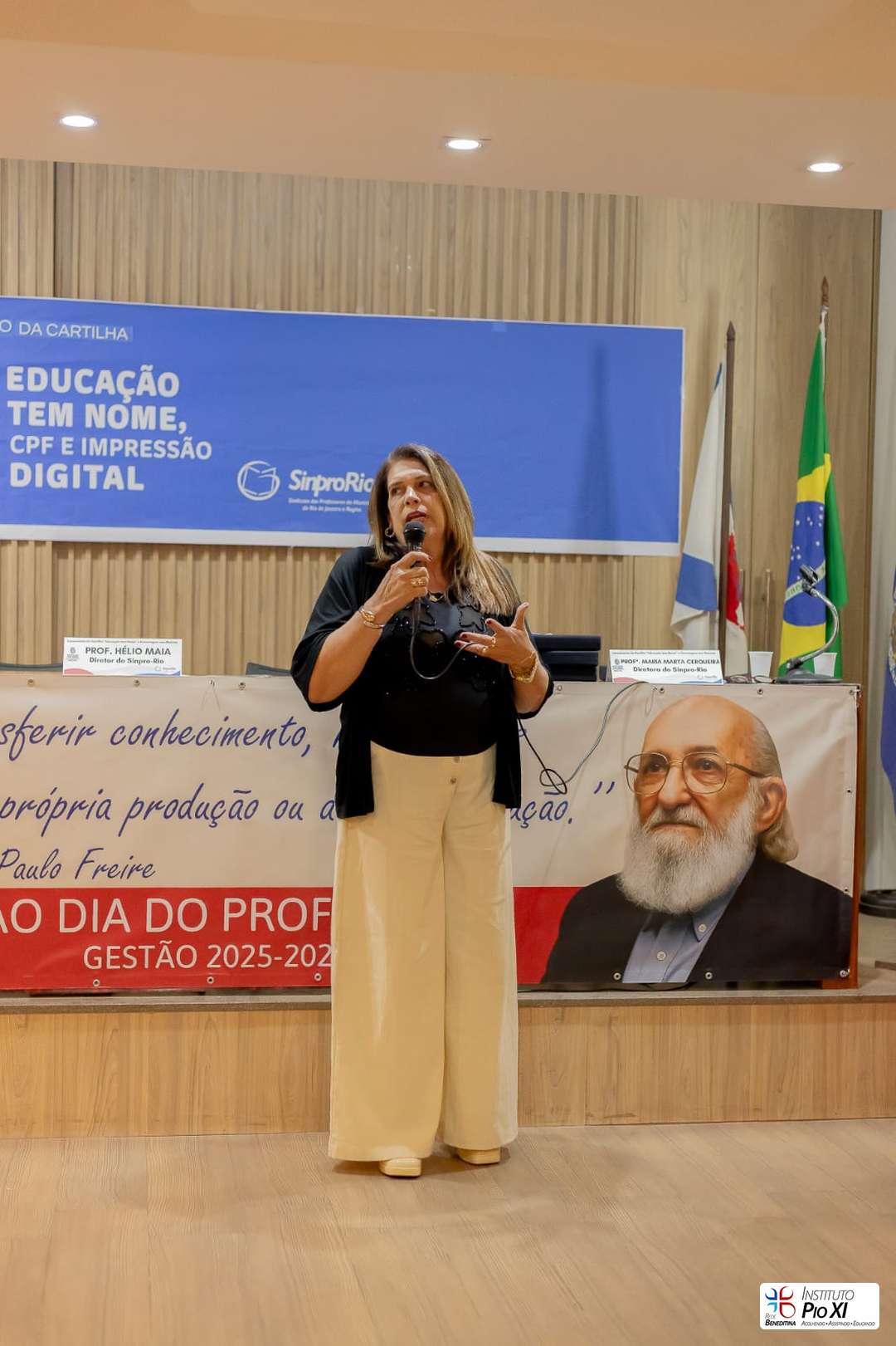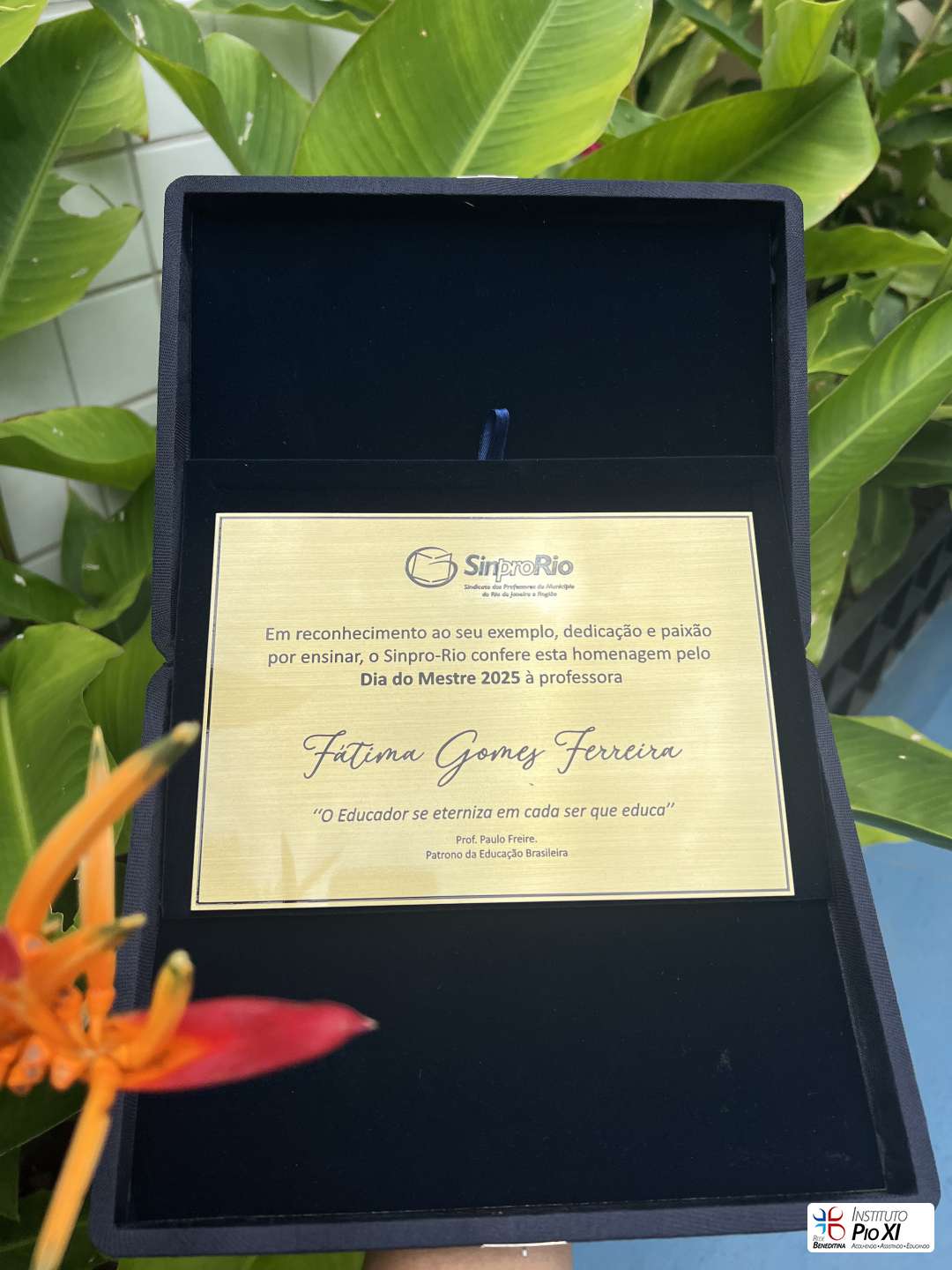 Neste mês, a docente foi reconhecida pelo SinproRio por sua trajetória exemplar, marcada pelo compromisso com a educação, pela sensibilidade em sala de aula e pela paixão em formar gerações de estudantes.
