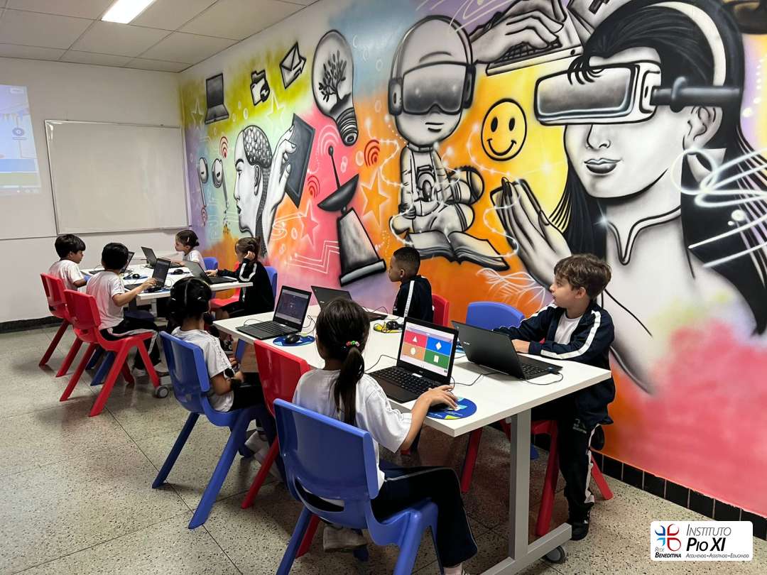 Na biblioteca, as crianças exploraram registros e fotografias que contam a evolução da nossa escola. Já no laboratório de informática, vivenciaram dois jogos especiais que colocaram à prova seus conhecimentos e agilidade.