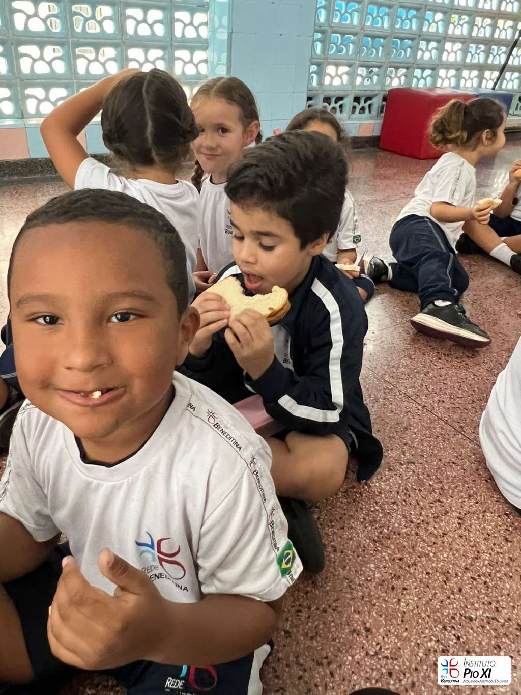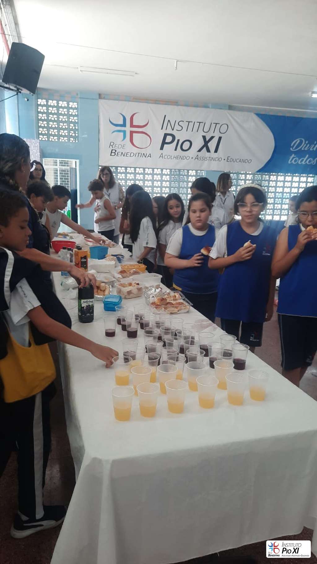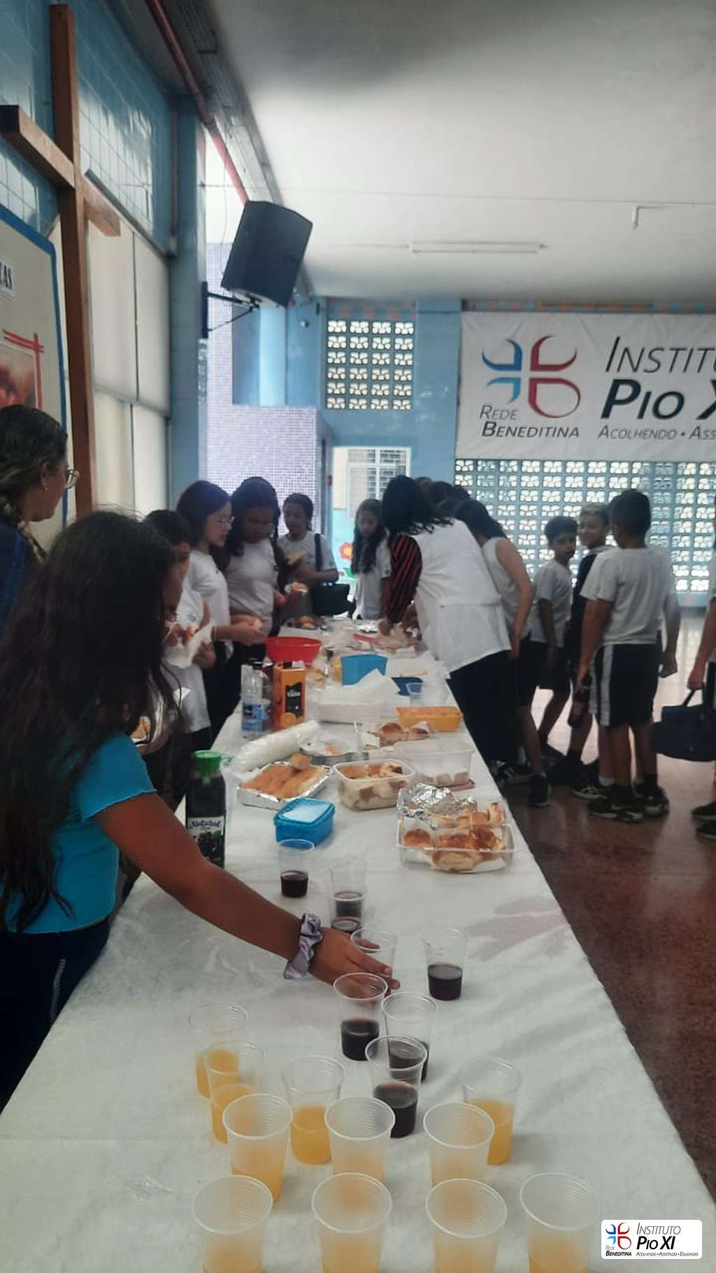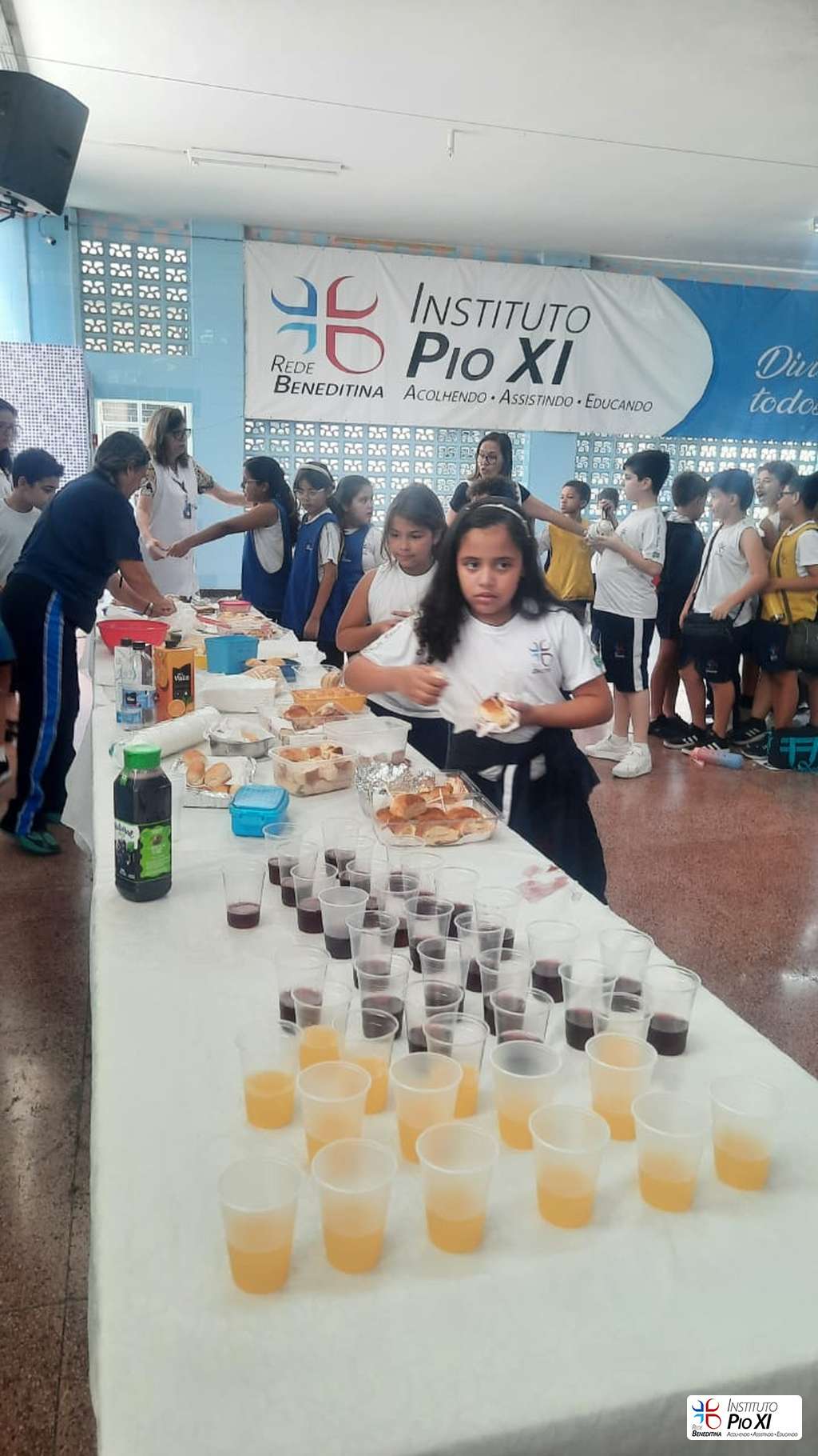 Na partilha do pão promovida pela equipe de Língua Inglesa, os alunos rezaram e agradeceram as bênçãos recebidas durante o ano.