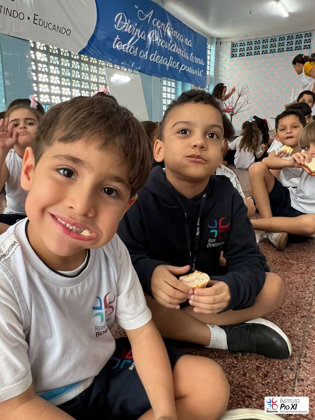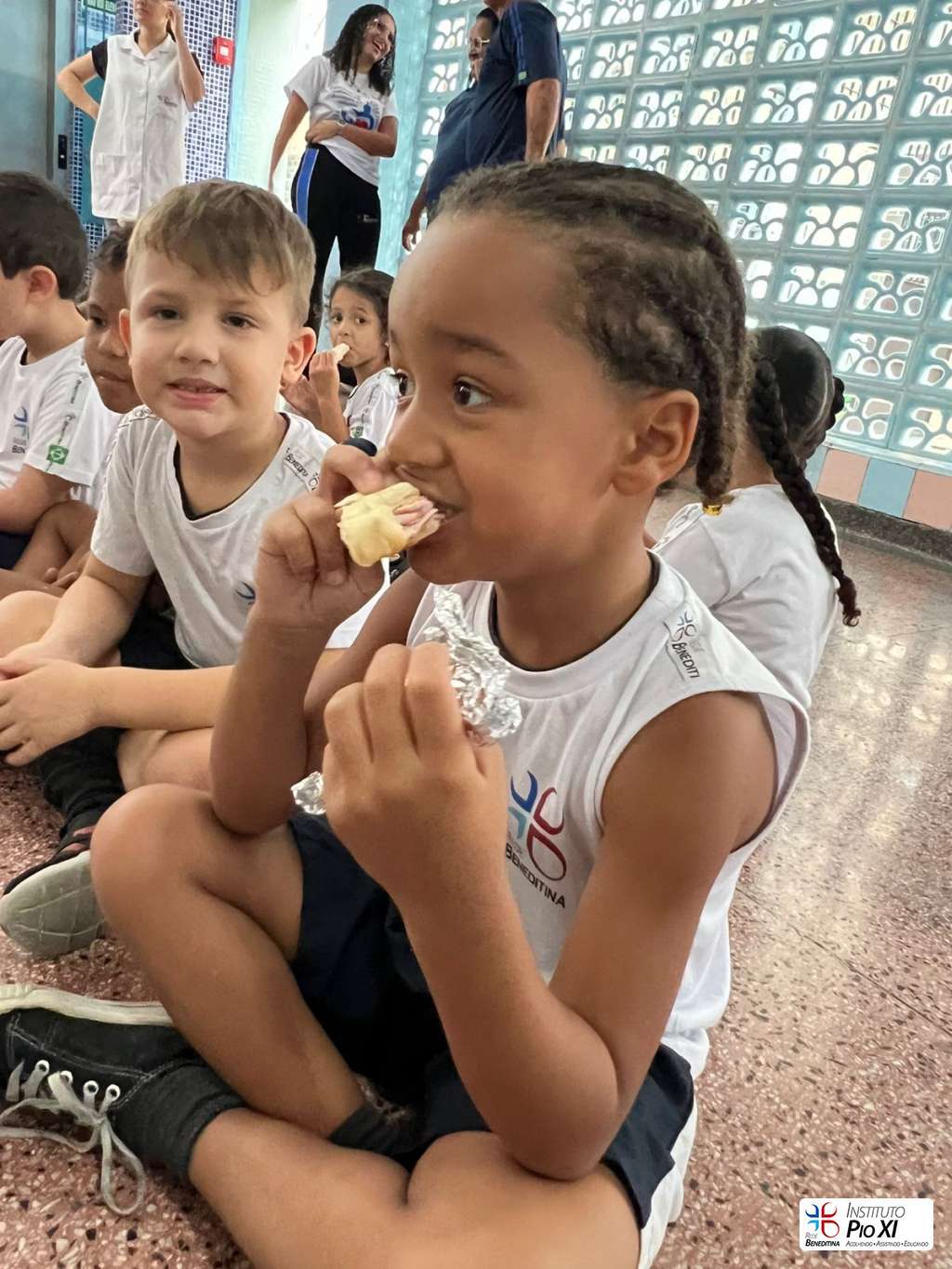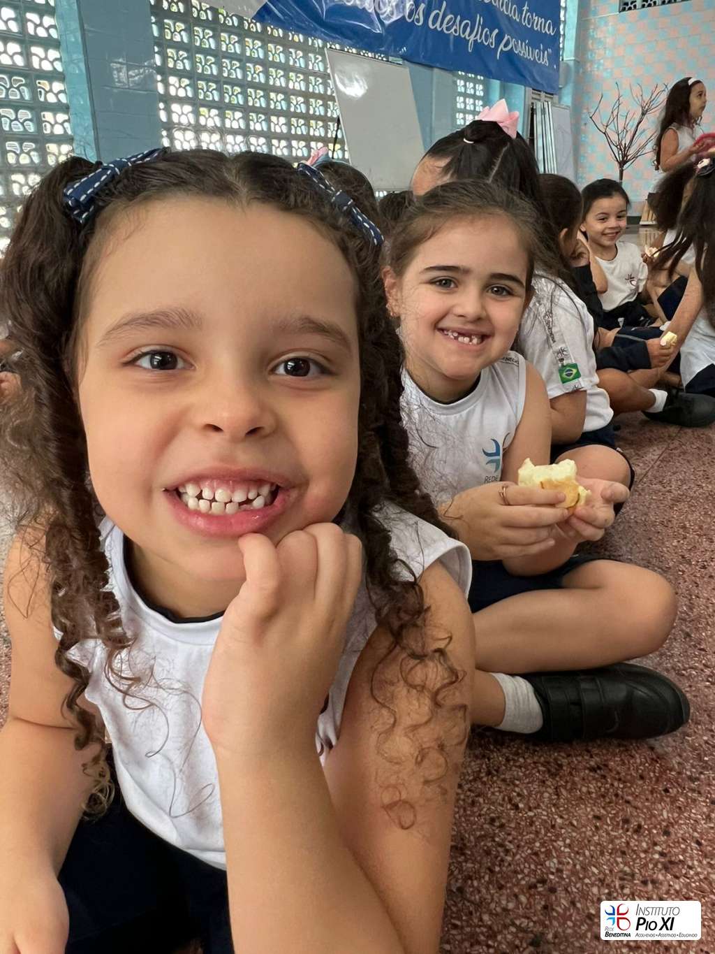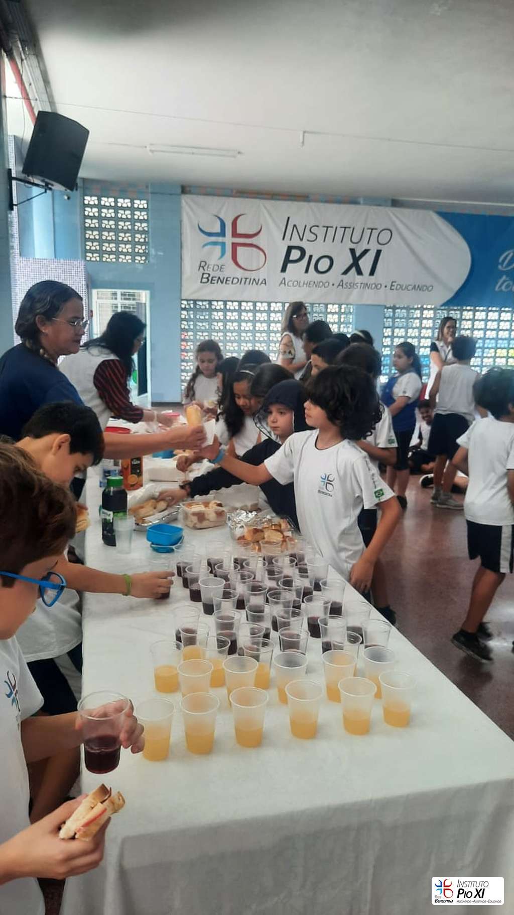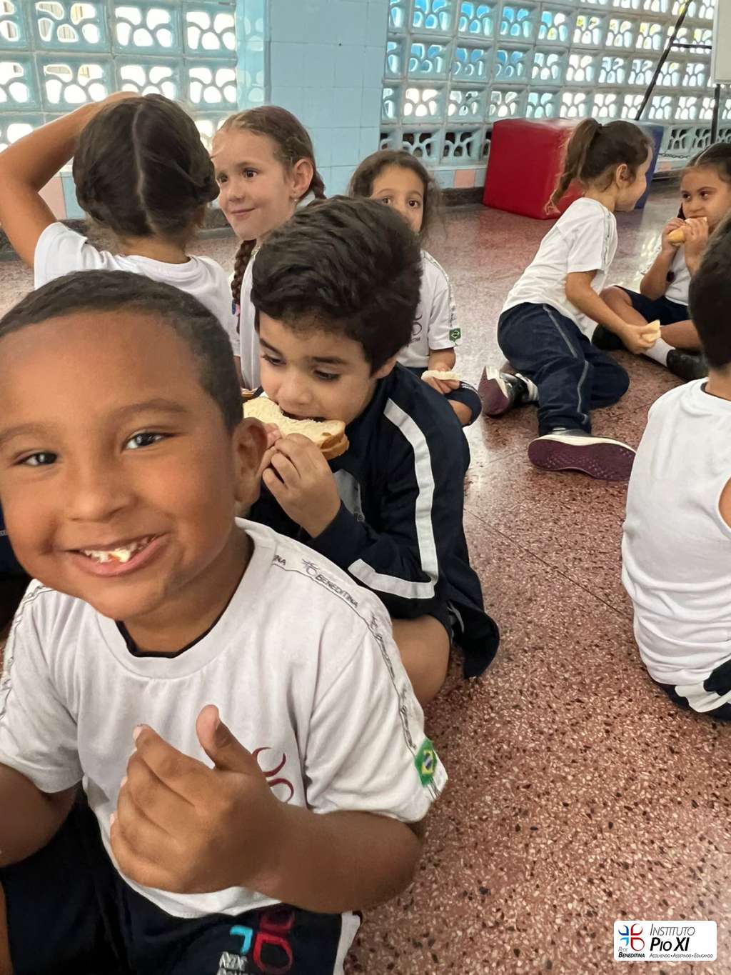 Na partilha do pão promovida pela equipe de Língua Inglesa, os alunos rezaram e agradeceram as bênçãos recebidas durante o ano.