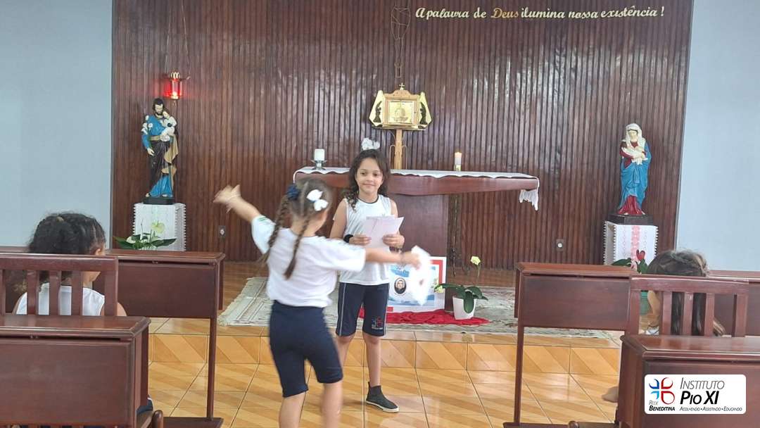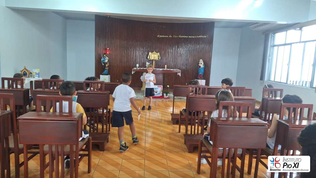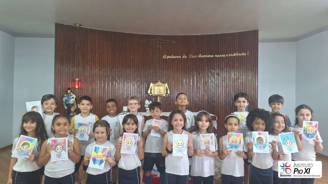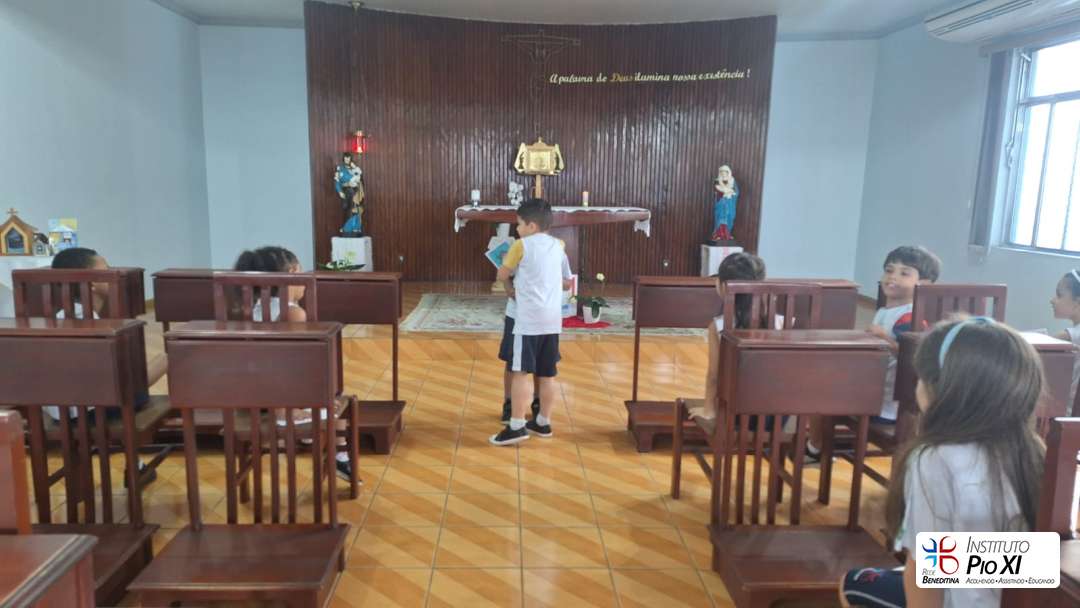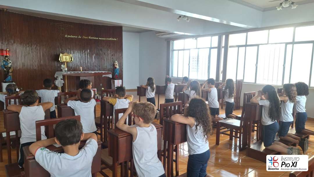 A turma do EF1A teve um lindo momento na capela de oração. As crianças rezaram para os seus anjos da guarda e se comprometeram a serem anjos dos amigos, rezando por eles durante todo o mês de outubro.