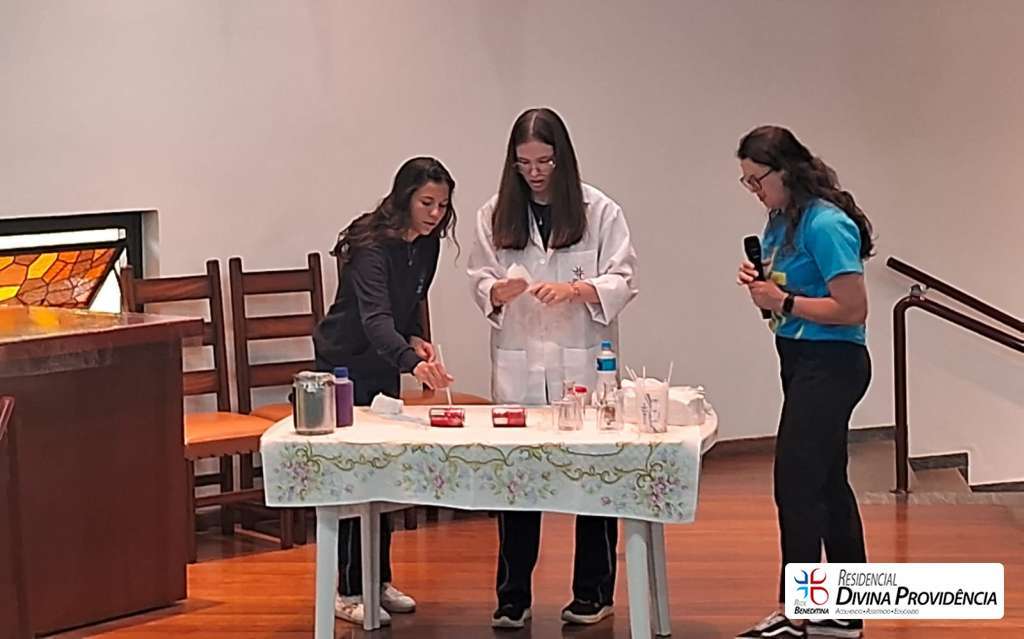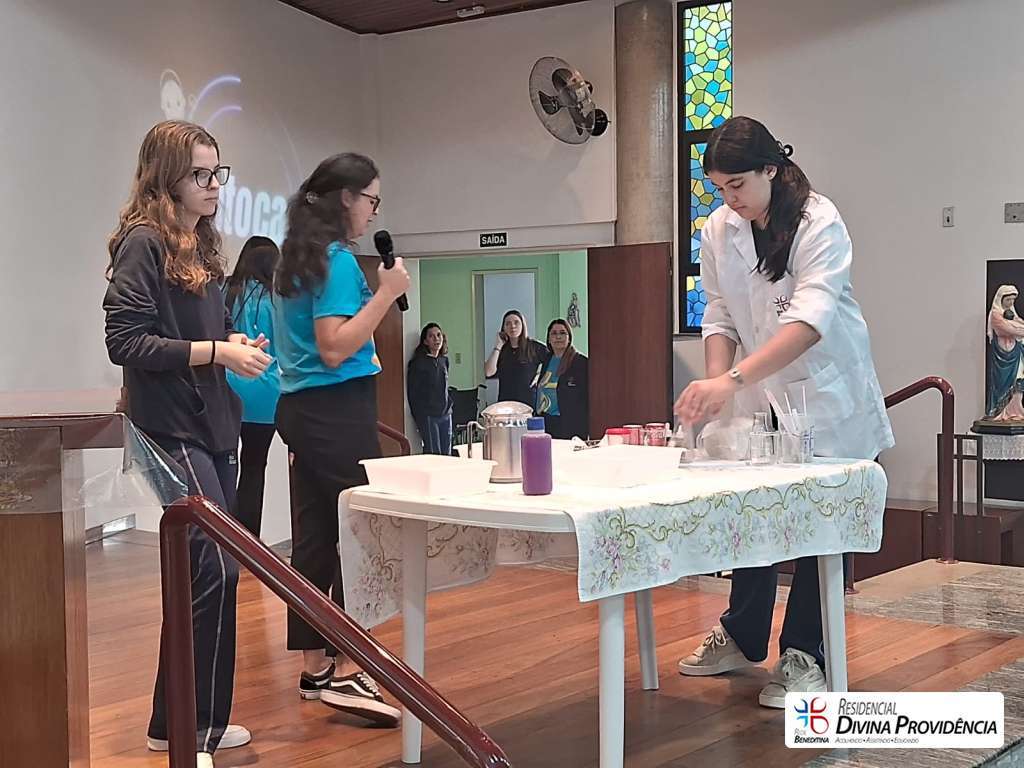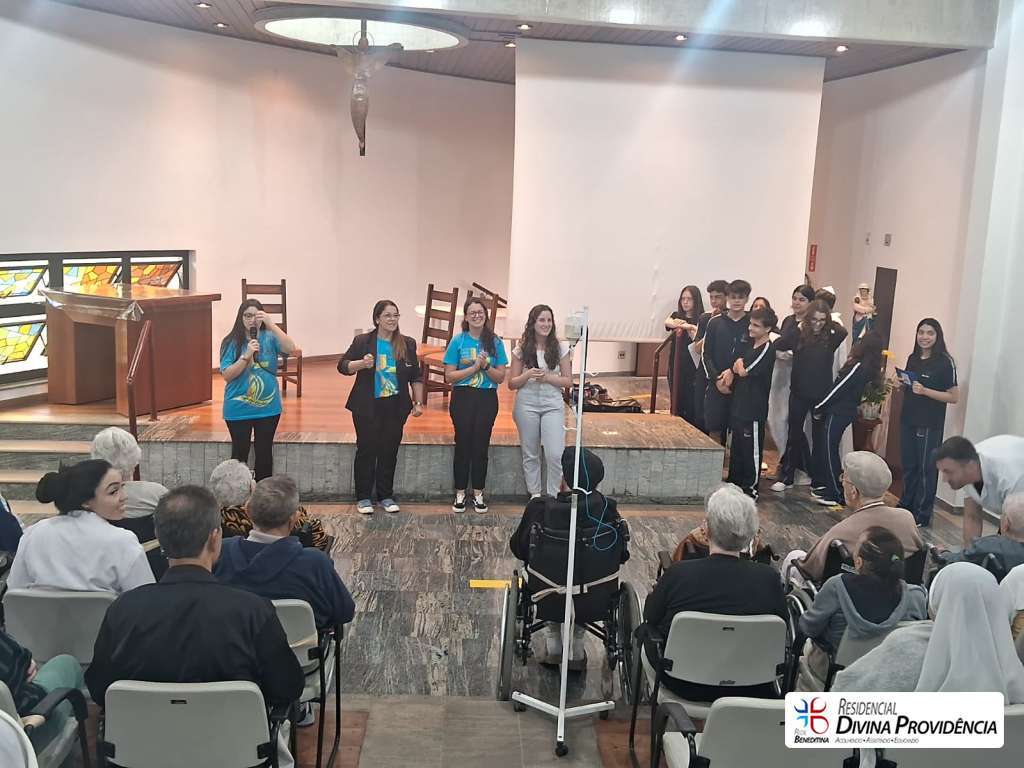Em um momento marcado por afeto, aprendizado e partilha, os alunos da 1ª e 3ª séries do Ensino Médio do Instituto Pio X – Osasco/SP ( @institutosaopiox ) visitaram os idosos do Residencial Divina Providência. Durante a visita, as turmas prepararam diversas apresentações especiais, incluindo a história de São Pio X, experimentos científicos e cânticos alegres, que encantaram a todos.